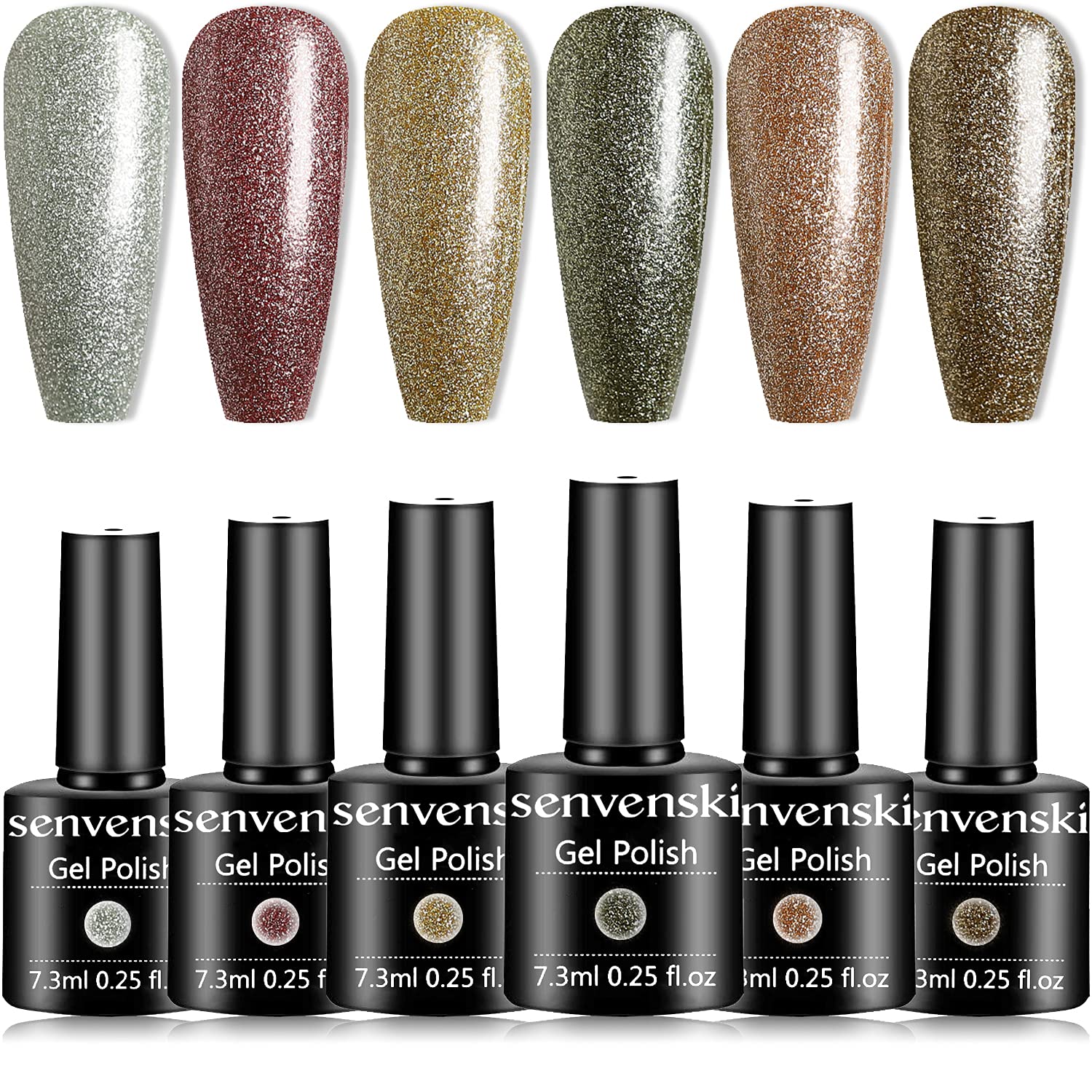 Amazon Com Senvenski Metallic Gel Nail Polish Matte Bronze Color Glitter Sparkle Silver Red Gold Grey Pink Brown Uv Led Soak Off Art Varnish Manicure Gift Set Kit Salon Home Diy Tj6 001